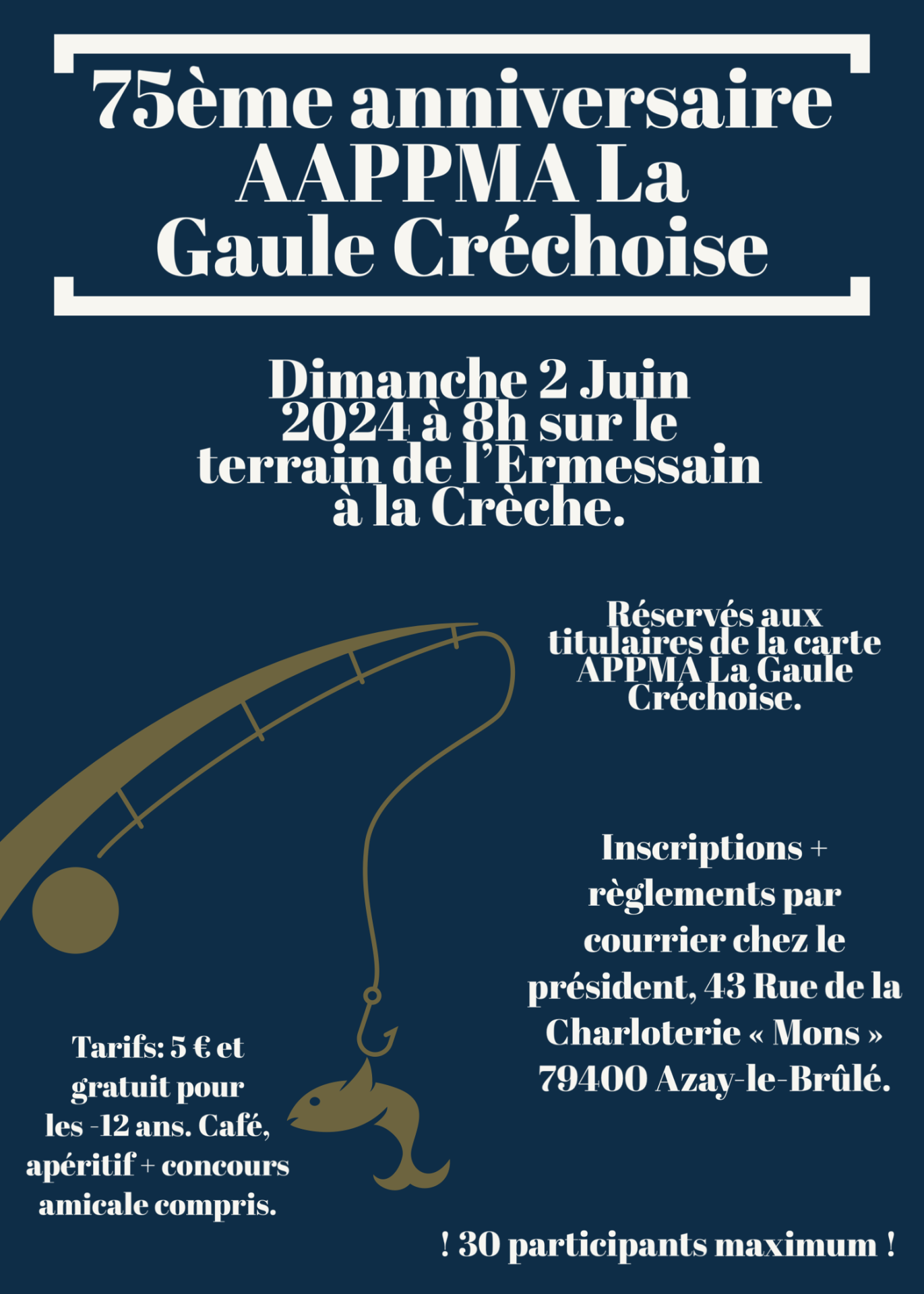 Amis pêcheurs, il est important que vous preniez votre carte de pêche sur votre AAPPMA de La Crèche. Plus on a d’argent, plus on peut mettre de poissons dans vos rivières.
