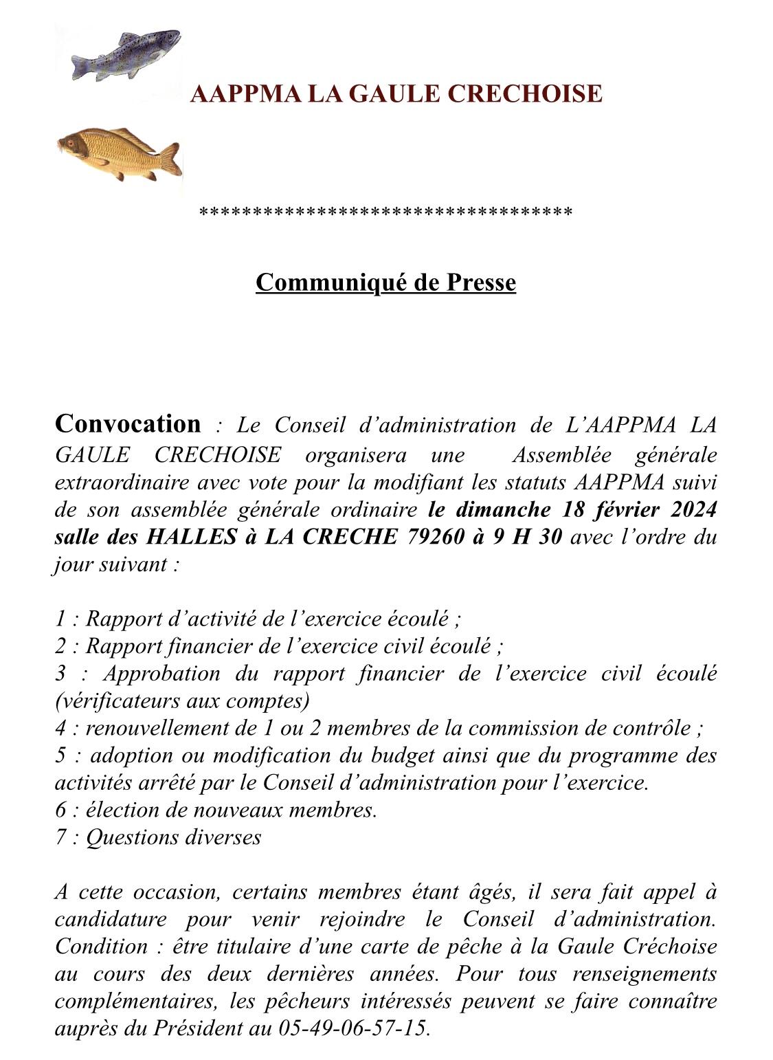 Notre bureau vieillissant, nous lançons un appel pour nous rejoindre et s’investir à nos côtés pour la protection des milieux aquatiques. Ce message se tourne vers la jeunesse pour ainsi éviter la mort des AAPPMA locales. Nous manquons de bras, mais surtout venez nous apporter vos idées. Une équipe qui travaille dans la bonne humeur et la convivialité vous accueillera.